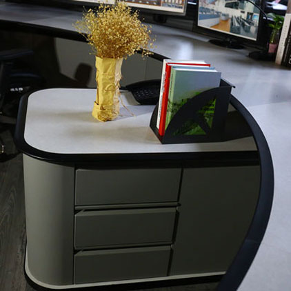 鋼制文件柜,臺面采用防火板材料柔性聚氨酯包邊。